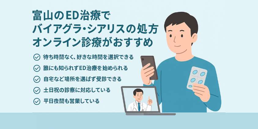 富山のED治療でバイアグラ・シアリスの処方はオンライン診療がおすすめ